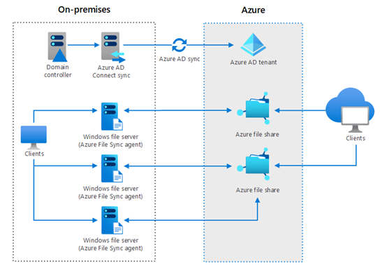 Azure file shares can be mounted concurrently by cloud or on-premises deployments. SMB Azure file shares are accessible from Windows, Linux, and macOS clients. NFS Azure file shares are accessible from Linux or macOS clients. Additionally, SMB Azure file shares can be cached on Windows servers with Azure File Sync for fast access near where the data is being used.